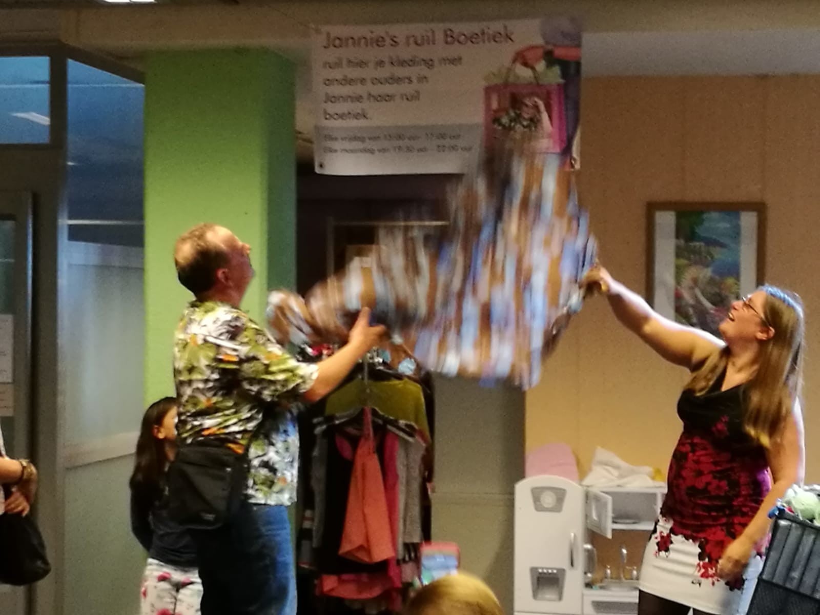 Mensen uit de wijde omgingen kwamen langs. Dit zijn gezinnen die ook al op onze oude locatie in Baarn bij ons langs kwamen en zo gelukkig zijn dat wij nu weer de combinatie kleding en knutselen samen hebben.