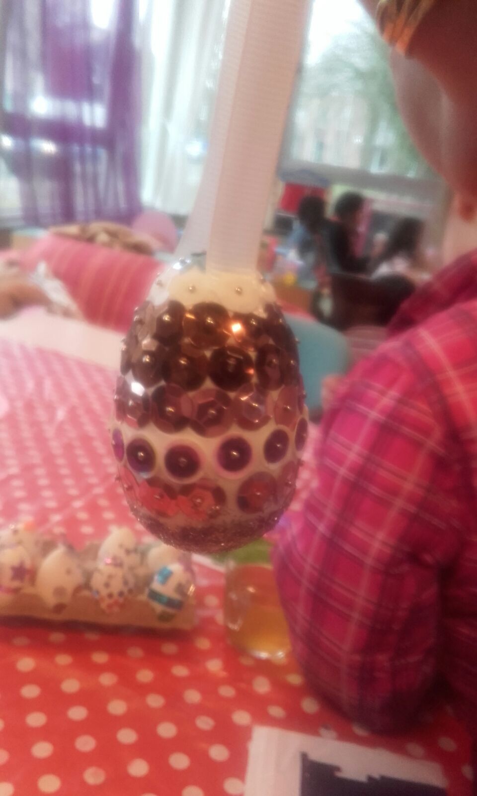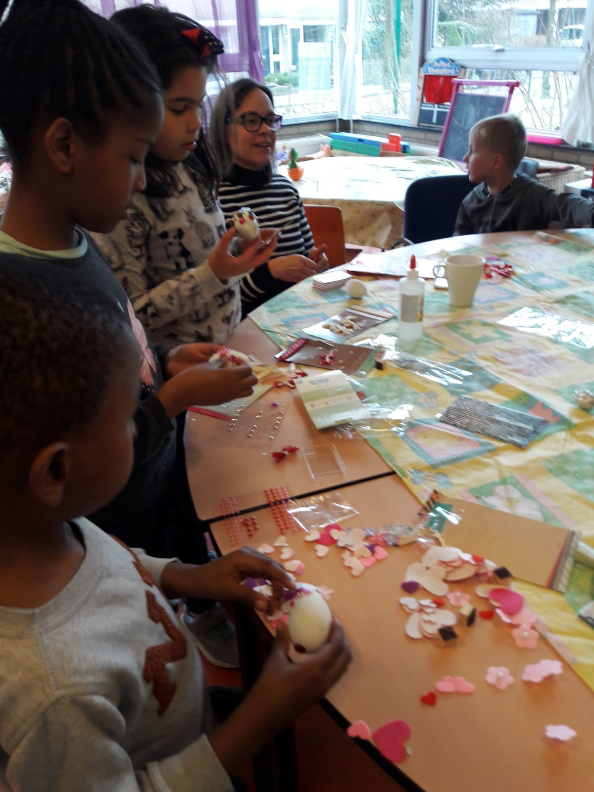 De basis bestond uit piepschuim ballen, deze werden versierd met stift, glitters en nog veel meer. De mooiste ballen zijn er gemaakt. Het leuke aan deze activiteit is dat iedere kind los kan gaan met zijn of haar eigen fantasie en maken wat er in hun opkomt. Prachtig om te zien hoe alle glitter door de lucht vloog, in de haren zat, achter de oren en over de Kleding. Ze hebben allemaal genoten.