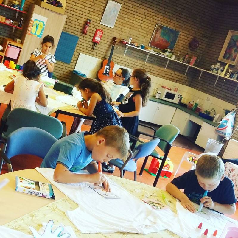 En alle kids hebben een t shirt gemaakt voor het cultureel festival.