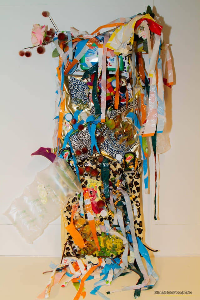 Hier een aantal voorbeelden van kunstwerken die met plasticafval gemaakt zijn: